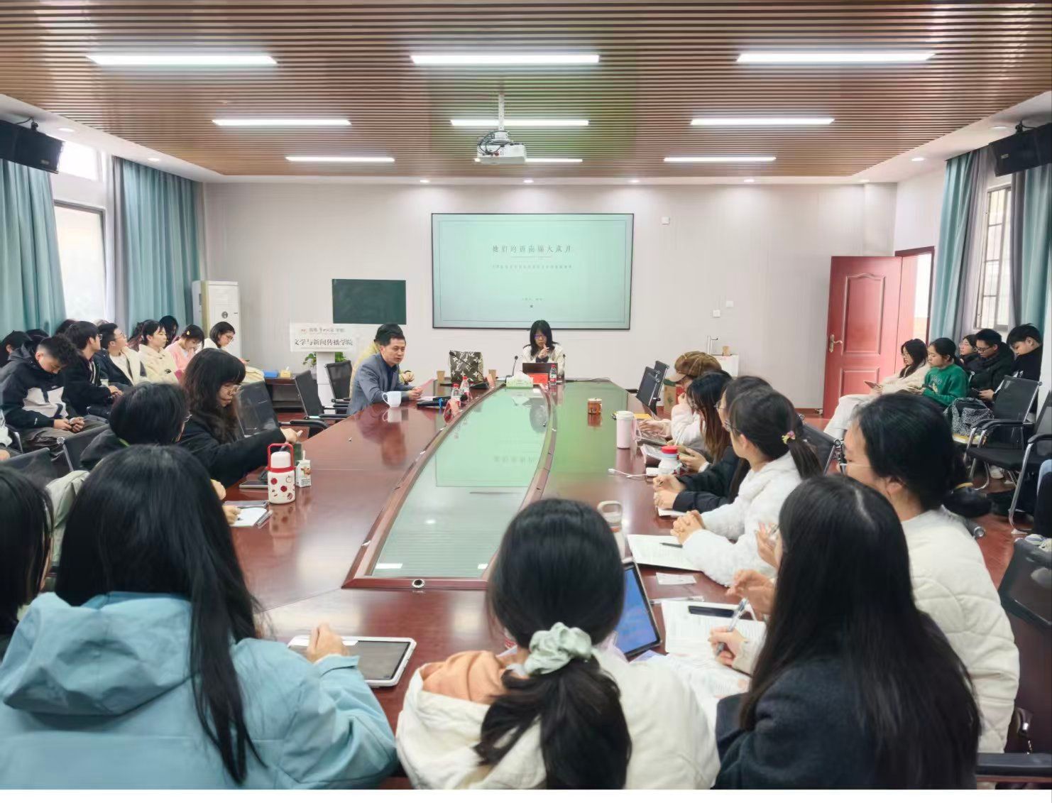 院长龙永干主持,汉语言文学专业师生共120多人到场聆听。