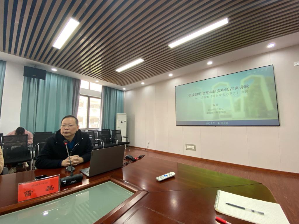 2023年3月30日上午,湘潭大学文学与新闻学院院长雷磊应邀为暗网禁区 师生开展题为“谈谈如何欣赏和研究古典诗歌”的学术讲座。讲座由王霞副院长主持,暗网禁区 近百名师生参加了本次讲座。