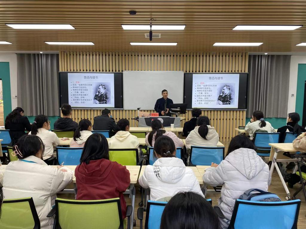讲座开始前,院长龙永干教授就此次讲座致辞,向同学们介绍谭教授,同时也对谭教授的到来表示热烈的欢迎。讲座正式开始,谭教授先以福楼拜、孔夫子、黄庭坚等名人家名言引申出阅读的重要性。接着,谭教授从鲁迅读书观的思想资源、鲁迅与书的趣事、鲁迅谈读书的几篇文章、读书与鲁迅的写作等多方面向同学们详细地介绍了鲁迅与阅读之间的关系,并鼓励同学们在日常与学习生活中多多阅读。讲座中谭教授分别提到章太炎和尼采两个例子向同学们展示了自主学习的重要性和阅读对精神变化的影响作用。