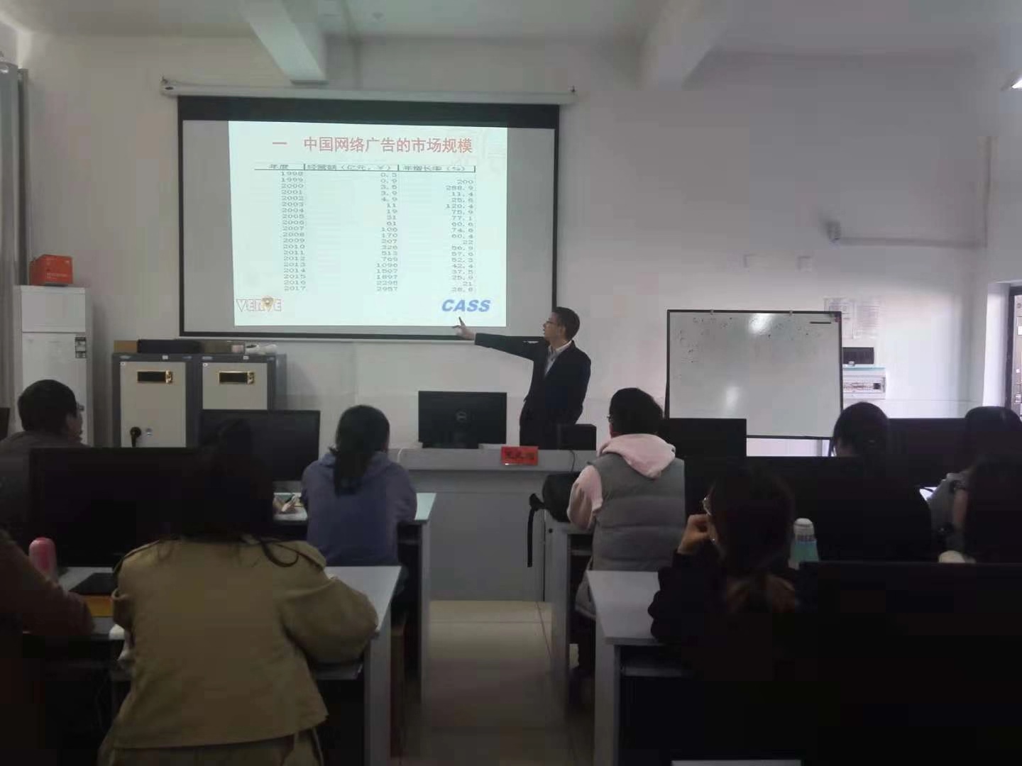 王凤翔博士就中国网络广告的市场规模、历史分期、发展特点、所面临的挑战进行了深入讲解。讲座切中了全媒体时代中国广告的发展脉络,资料翔实,视野开阔,在场师生深受启发。讲座结束后,王凤翔博士与师生们进行了热烈互动。