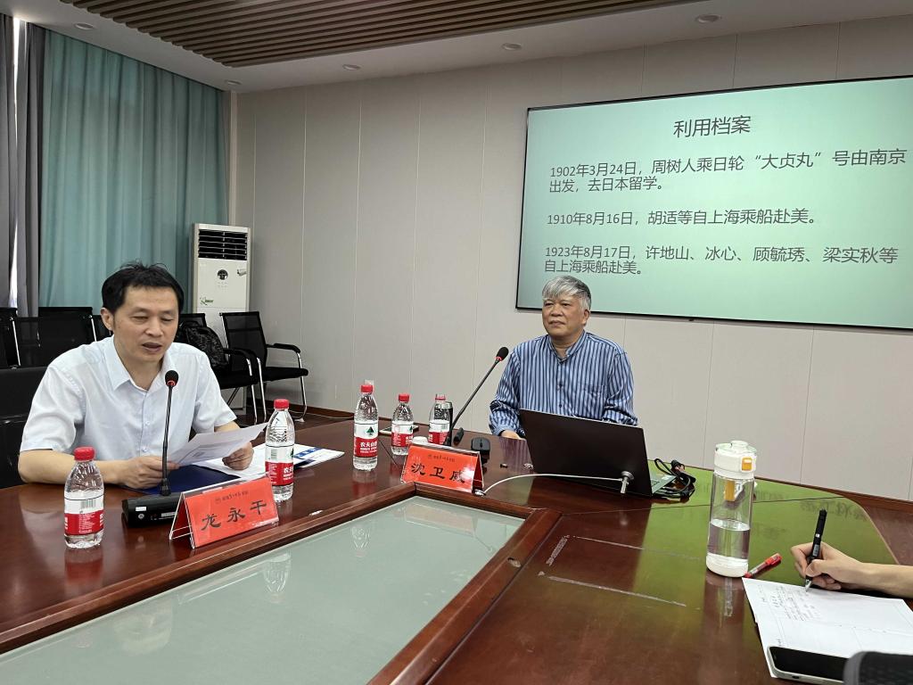 沈卫威教授首先立足文献材料重新叙事,揭开了文学中的三段船缘。随后,沈教授以故事讲述的形式,逐步分析三段船缘中人物与人物之间、刊物与刊物之间的关系以及虚构文本与写实文本之间的文本互证,认为文本研究应从史料与理论着手,文史互证。沈教授重点阐述了人物间的互相影响,如陈寅恪对鲁迅美术的影响;梅光迪、赵元任与胡适三方交流,促进国语的推广;陈独秀与蔡元培的双向互动,引出胡适的《文学改良刍议》的发表,潜移默化地推动了新文化运动发展。
