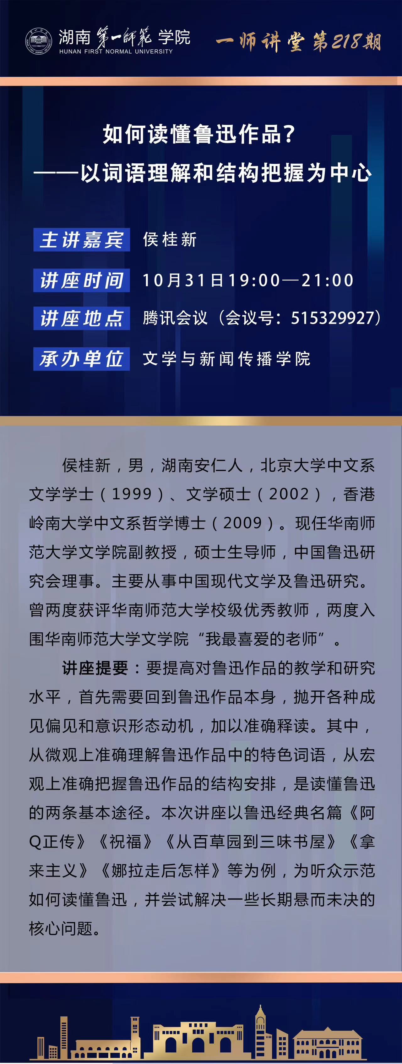 一师讲堂第218期:如何读懂鲁迅作品?——以词语理解和结构把握为中心