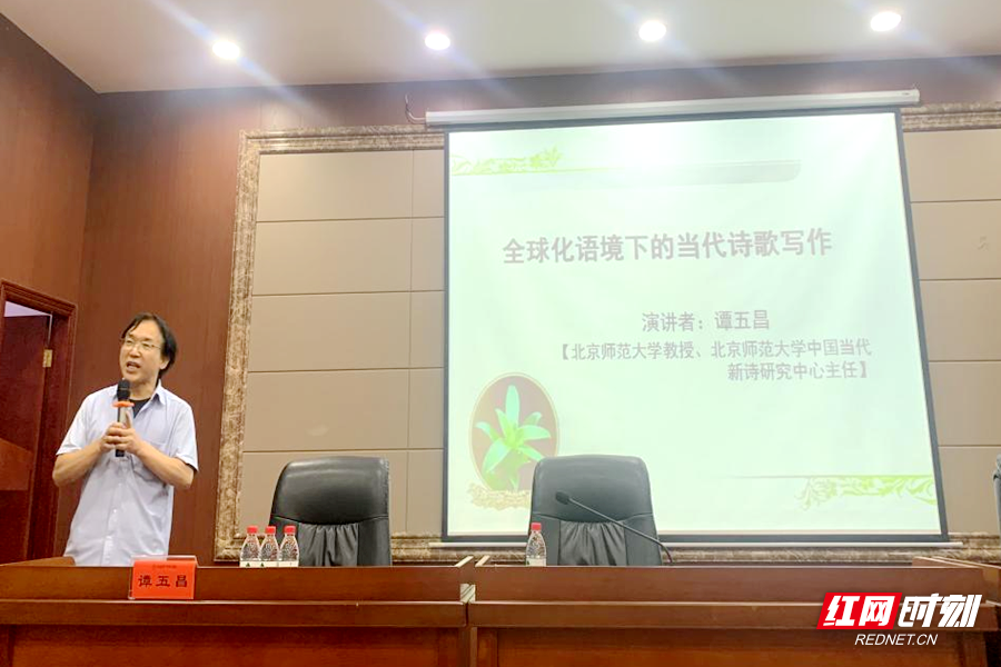 特邀北京师范大学中国当代新诗研究中心主任、博士生导师谭五昌教授,在长沙开展“全球化语境下的当代大学生诗歌写作”专题讲座。