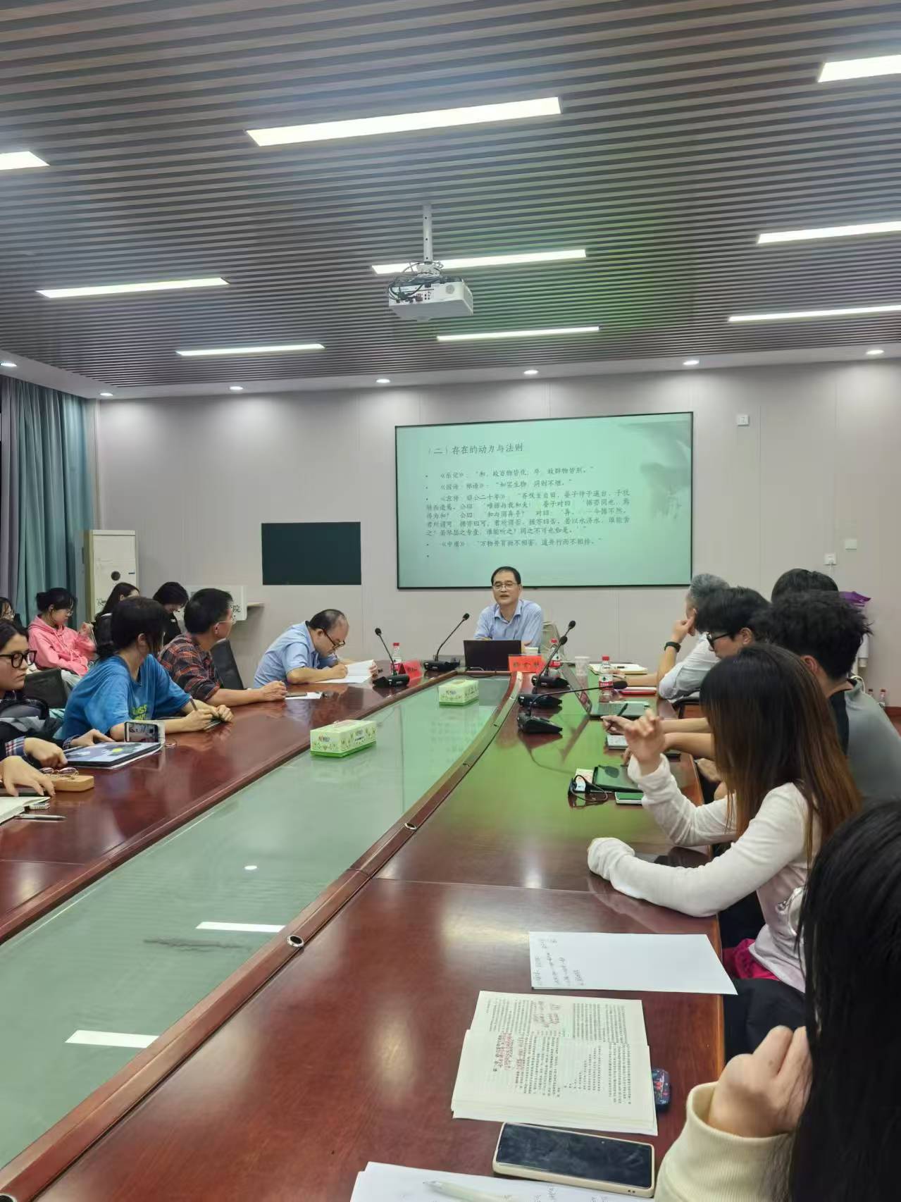 开展题为“如乐之和:中华文明的精神与特征”的学术讲座。副院长杨水远、张惠,汉语言文学系卢阿涛主任、桂昕翔、童业富、周奕希、谭咏枚等老师以及23级中文6班、润之英才班全体学生等百余名师生参与讲座。讲座由副院长杨水远主持。学术报告伊始,杨合林教授以“乐”“乐学”的基本内涵解读为导引,指出“乐之和”最能体现中国文化的基本精神,是典型的中国智慧和中国经验。杨合林教授认为“道”生“和”,“和”生“乐”,知“乐”则知“和”,知“和”则知“道”,一步步地引导学生认识到“和”的本义及其延生到社会领域、政治领域以及理想世界的“和”的发展过程和具体含义。尤其是杨合林教授以实现大同社会和构建人类命运共同体为例展开论述,结合时代,使同学们更加深刻地理解“和”的基本含义和美学内涵。杨合林老师总结道“美各其美,美人之美,美美与共,天下大同”,我们的世界是一个多元的世界,要尊重和理解差异性,我们的社会才能成为一个更加和谐的社会,这也正是中华文明的基本特征和优势所在。在交流环节,同学们深度思考、踊跃发言,杨教授对同学们的疑惑一一予以解答。副院长杨水远认为杨合林教授的报告学术含量、信息含量极高,拥有阔大的学术境界,他认为杨合林教授所展示的学术路径,至少给我们三点启示,即做学问就要做最根本的、最本源性的、最扎实的学问,勉励同学们向杨合林教授学习。