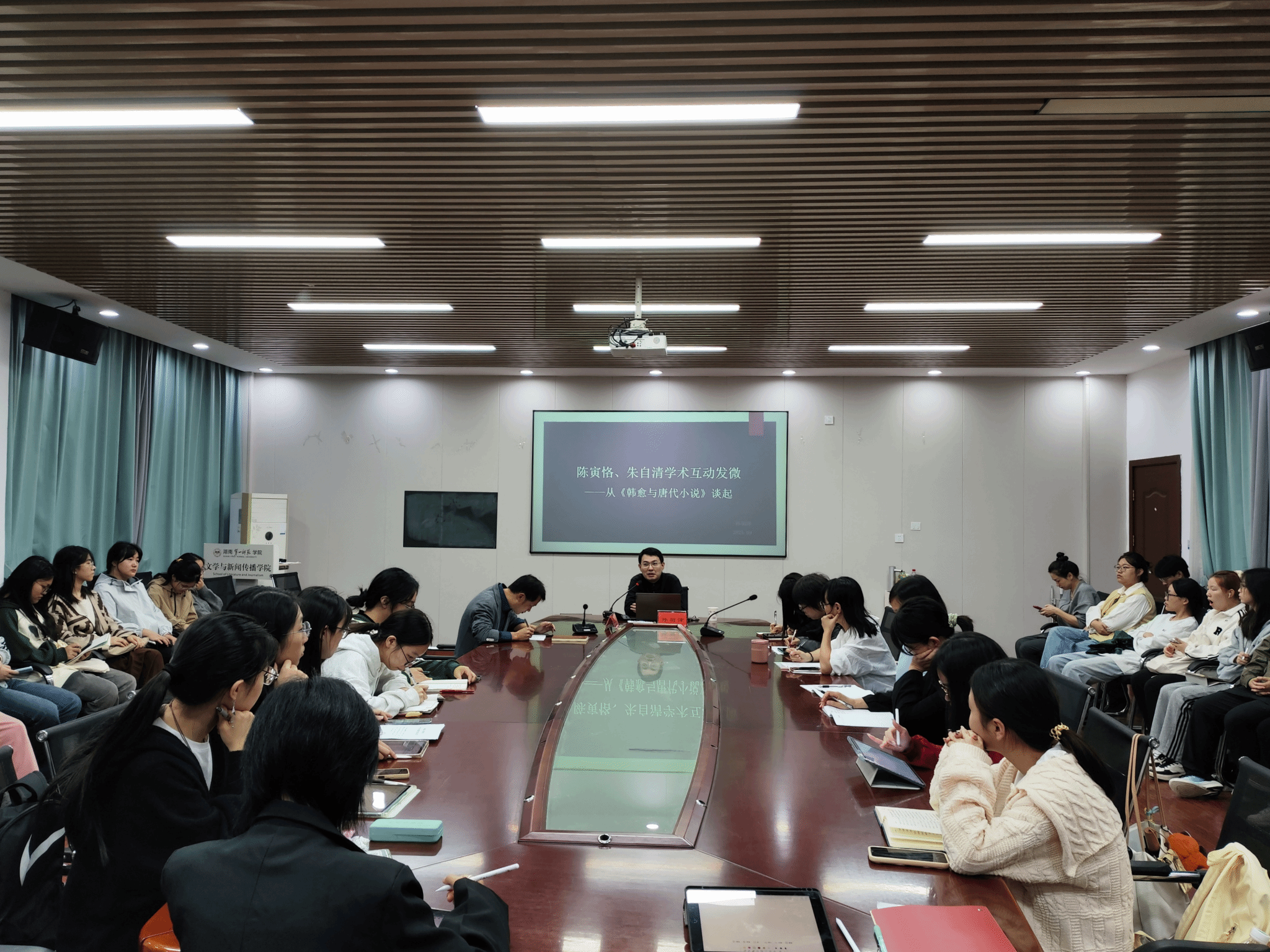 ,在玉衡楼201报告厅作题为“陈寅恪、朱自清学术互动发微——从《韩愈与唐代小说》谈起”的专题讲座。讲座由龙永干院长主持,百余名师生参与。