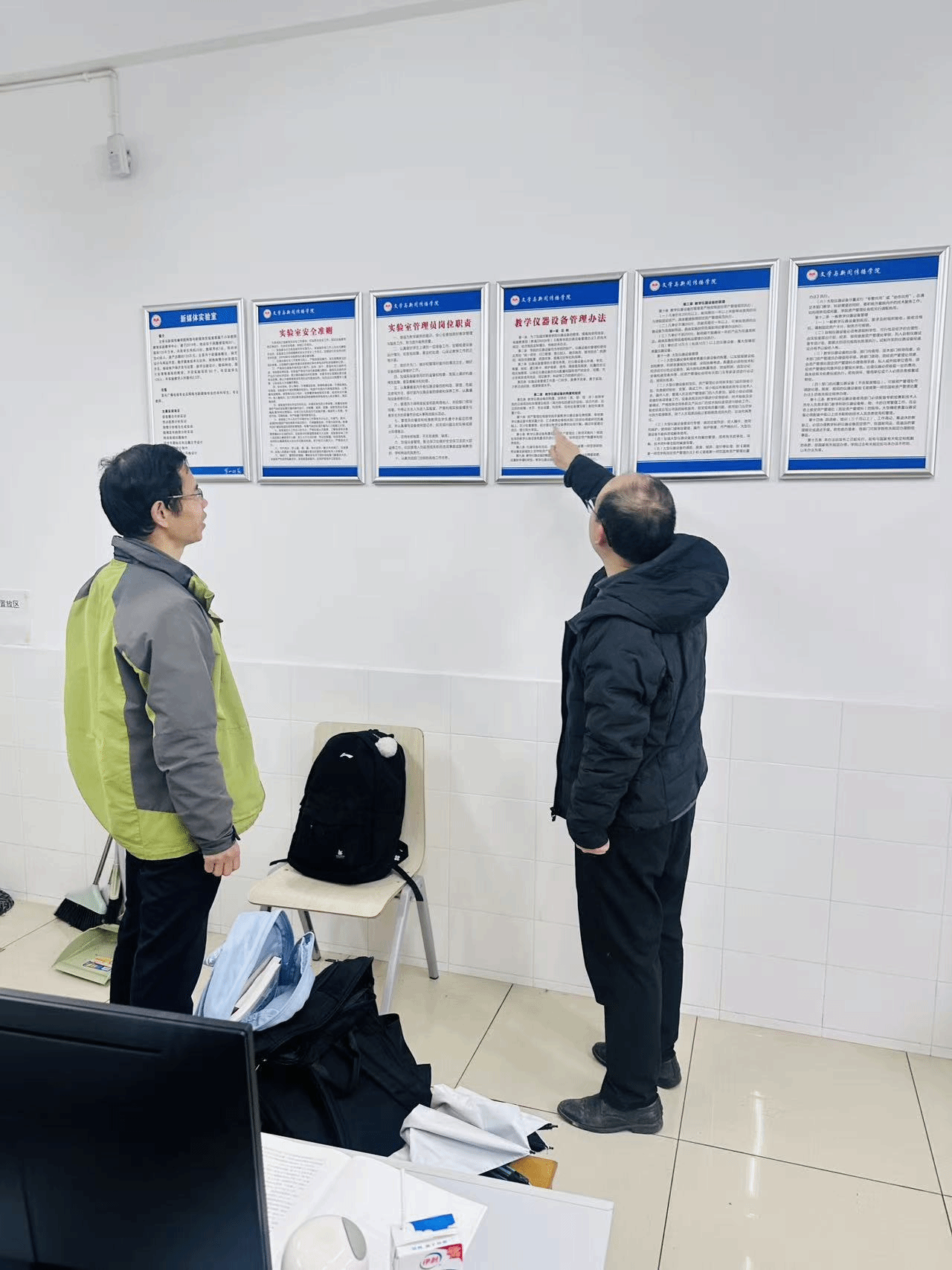 3月25日上午,杨水远副院长带领实验室负责人陈郑予、袁丁在开学检查的基础上对实验室进行进一步自查。杨水远副院长指出:当前已进入实验教学常态化运行、实验项目集中开展的关键阶段,随着气温回升、雷雨大风天气增多,我们应该深刻吸取重庆大学“3.20”实验室事故教训,切实落实安全主体责任,强化安全警示教育,做到人员全覆盖、流程全穿透、隐患全清零;结合春季气候特点与教学科研高峰实际,科学安排实验课程,全面加强实验室设备常态化运维与隐患排查。