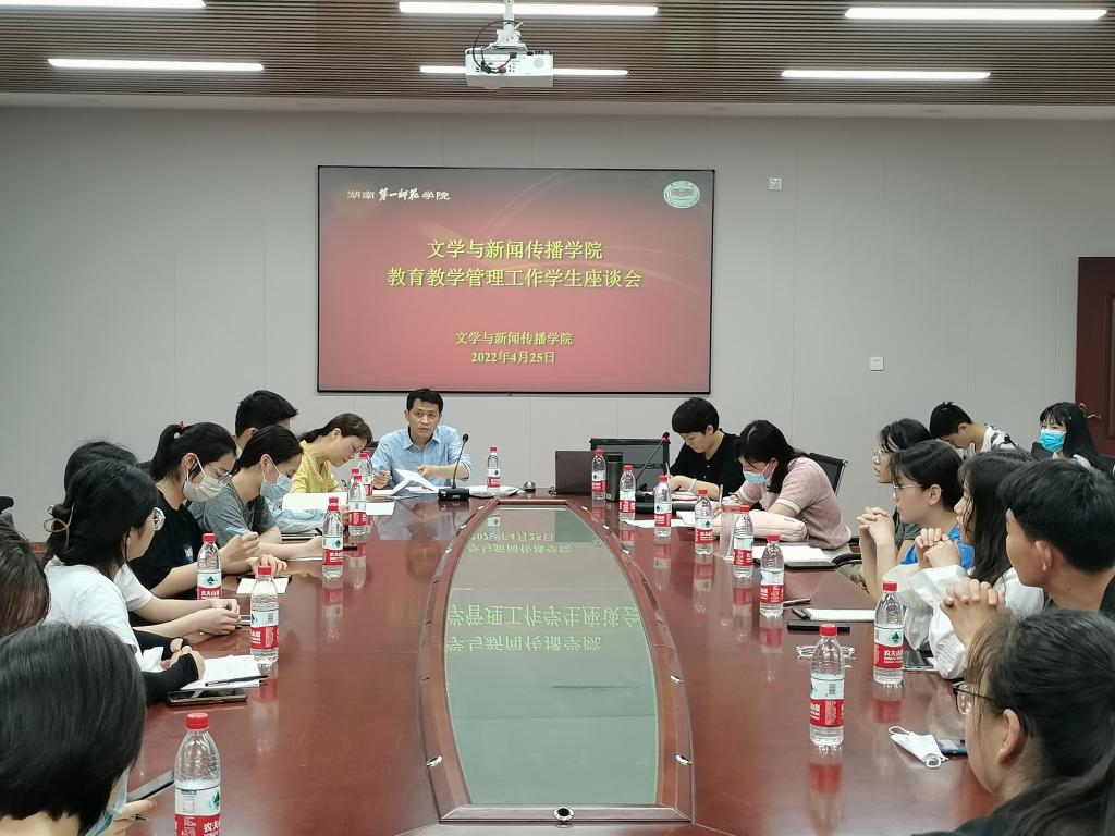 教育教学管理工作学生座谈会在玉衡楼201召开,院长龙永干,副院长罗燕,校督导代表林平乔、谢亚可,院督导代表马红英,院教务办主任李锴正以及32名学生代表参与了此次会议,会议由罗燕主持。