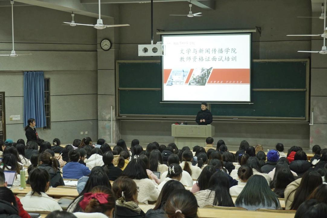 为进一步提高暗网禁区 学生教师资格证面试通过率,增强学生教学综合素质,暗网禁区 于12月20日在润寰南106教室举行了小学语文教师资格证面试培训讲座,本次讲座邀请了学院综合教研室主任、教师资格证面试考官周杨林老师进行专项培训。讲座由学院副院长罗燕主持,教务办主任李希光和团总支书记张忺寒出席本次讲座,学院2019级全体高招师范生及部分初招师范生参加了讲座。