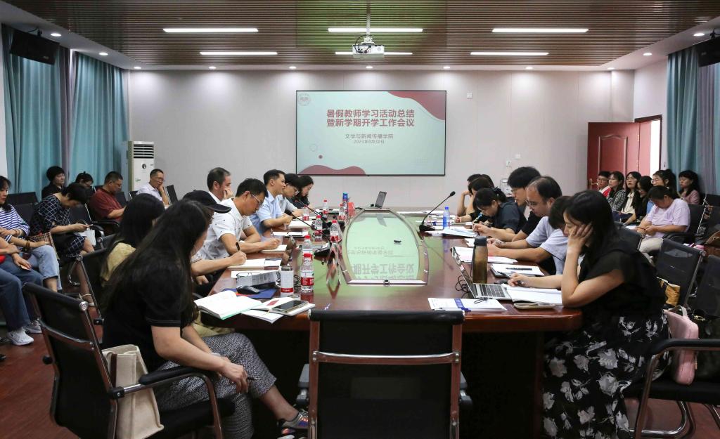 2023暑假教师学习活动总结暨新学期工作会议由何培森书记主持。庄园副教授作为教师代表,就2023暑假教师学习活动作了题为“课程建设,回到‘原点’”的发言。庄老师结合暑期学习文件,从研究学情、课程理念和不忘教学初心三个方面,深入分享了她多年来在课程建设方面的心得体会。汉语言文学系系主任彭娟副教授从课程组的团队精神与合作意识,课程建设的集群性、导向性、专业性与创新性等方面,结合专业建设与发展谈及研修的心得体会,与参会人员深度分享了系室老师们暑期研习的学习成果。