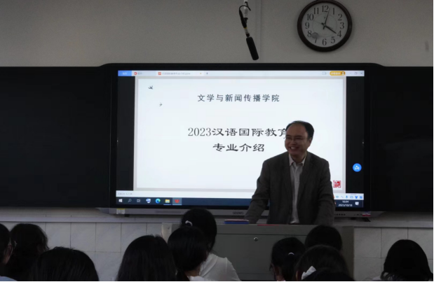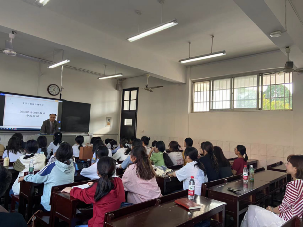 10月18日下午,汉语国际教育系主任王正老师在城南书院校区教学楼305教室对2023级汉语国际教育专业新生进行专业介绍,2023级汉语国际教育1班班主任刘晓云老师出席专业介绍交流会。