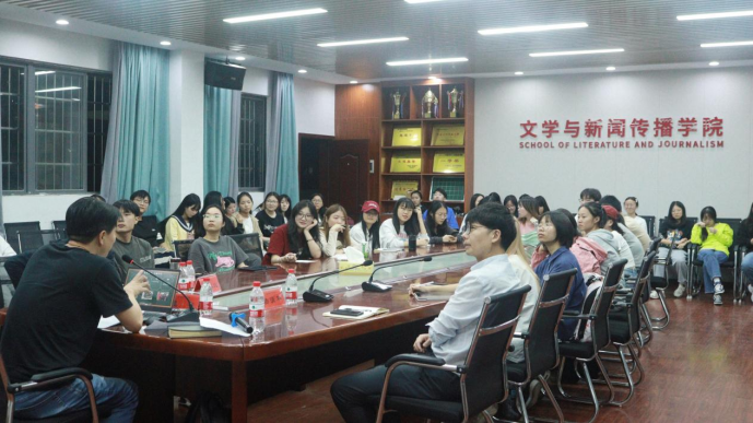 师生开展题为“如何迅速地完成一期纪录片节目”的实习讲座。讲座由副院长杨水远主持,副院长杨清华及近百名学生参与本次讲座。