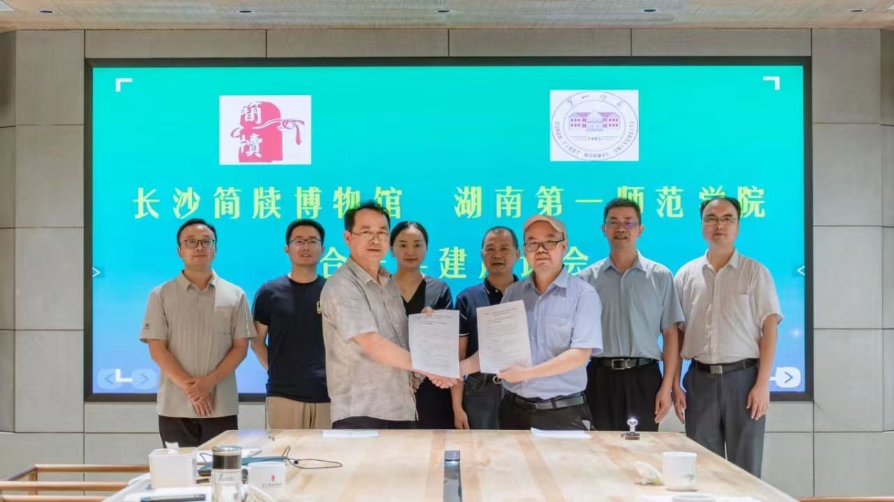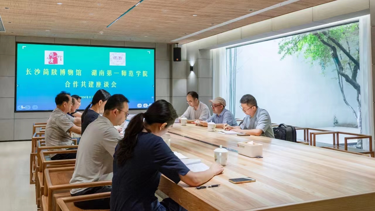 的基本情况,并表达从科学研究、实习实训、创新创业等方面与长沙简牍博物馆开展深度合作的意愿。李鄂权馆长介绍了长沙简牍博物馆的基本情况,特别就长沙简牍博物馆的独特特色、简牍馆藏和文化传播等方面的优势做了分享,李馆长指出长沙简牍博物馆与高校之间的合作是互利共赢的,并希望在签订产学研共建协议后,能将相关合作落实落地。