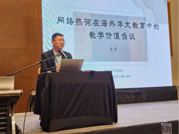 周军教授在研讨会上发表了题为《网络热词在海外华文教育中的教学价值刍议》的主旨演讲。他指出,随着信息技术的迅猛发展,华语网络热词已成为当代青年文化的重要组成部分,在海外视频媒介中广泛传播。这些热词以其鲜活的语体形式、广泛的场景应用性和当代中国文化精神的微形象代言等特性,为海外汉语学习者提供了迅速了解当代中国青年文化的便捷途径。周军教授的演讲见解独到、深入浅出,赢得了与会人员的一致好评,菲律宾相关中文媒体也对此进行了全方位的报道和关注。