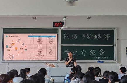 走入教学楼401教室,网络与新媒体系系主任谢亚可副教授正对2024级全体网络与新媒体专业新生表示热烈的欢迎。谢主任详细介绍了网络与新媒体专业的专业特色、师资力量、就业前景,并结合自身经验给新生提出了学习及生活方面的建议,并为同学们解答疑惑。会议现场气氛融洽,网络与新媒体专业的新生们纷纷表示,他们深刻了解了网络与新媒体这一专业,并做好了初步的学习规划。新生们承诺,他们定会刻苦学习专业知识,成为一名德智体美劳全面发展的一师学生。