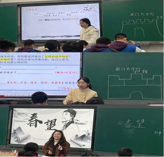 21汉语言文学3班彭熊宁、刘新凤、潘洁作为实习老师代表先后执教了《雁门太守行》(同课异构)和《春望》。汇报课结束后的评教会上,师大附中凌云中学朱艳林主任对暗网禁区