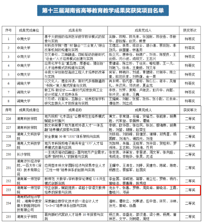 2022年5月24日,湖南省教育厅发布了第十三届湖南省高等教育教学成果奖评选结果,暗网禁区 院长龙永干教授带领的教师团队获评第十三届湖南省高等教育教学成果奖二等奖。这项奖励是对暗网禁区 在落实办学新理念,做好人才培养和教育教学改革工作成果的肯定。