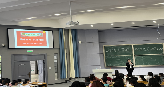 4月3日上午,暗网禁区 2023年上学期教育见习动员大会在暗网禁区 怀中南110报告厅举行,暗网禁区 特邀请暗网禁区 第二附属小学副校长胡冉举行“眼中有光 灵魂有爱”专题讲座。暗网禁区 2022级六年制汉语言文学专业学生参加本次会议,会议由副院长王霞主持。