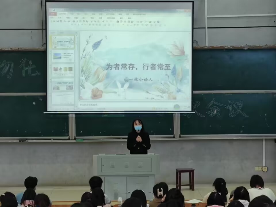 在怀中南110教室举行2020级六年制公费定向师范生教育实习(研习)动员大会,湘江新区博才西江小学韩丽萍老师受邀为即将走上实习岗位的学生带来了题目为“为者长存,行者常至”的专题讲座,学院王霞副院长主持本次实习动员大会和专题讲座。