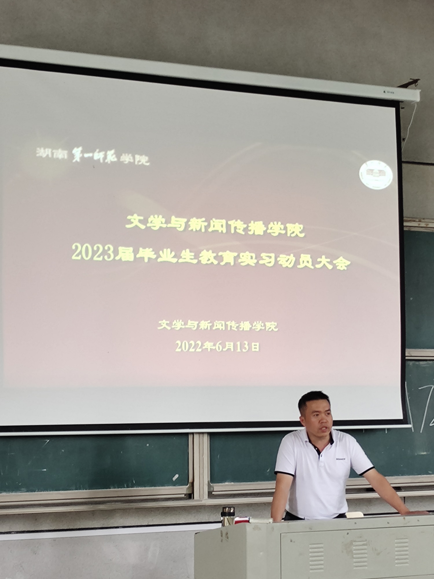 2023届毕业生教育实习动员大会在润寰南105报告厅1举行, 会议由院教科办主任李锴正主持,副院长王霞做了强调讲话,讲座嘉宾周杨林老师、袁利芬老师分别从专业角度作了精彩指导,2023届全体师范生参与了本次动员大会。