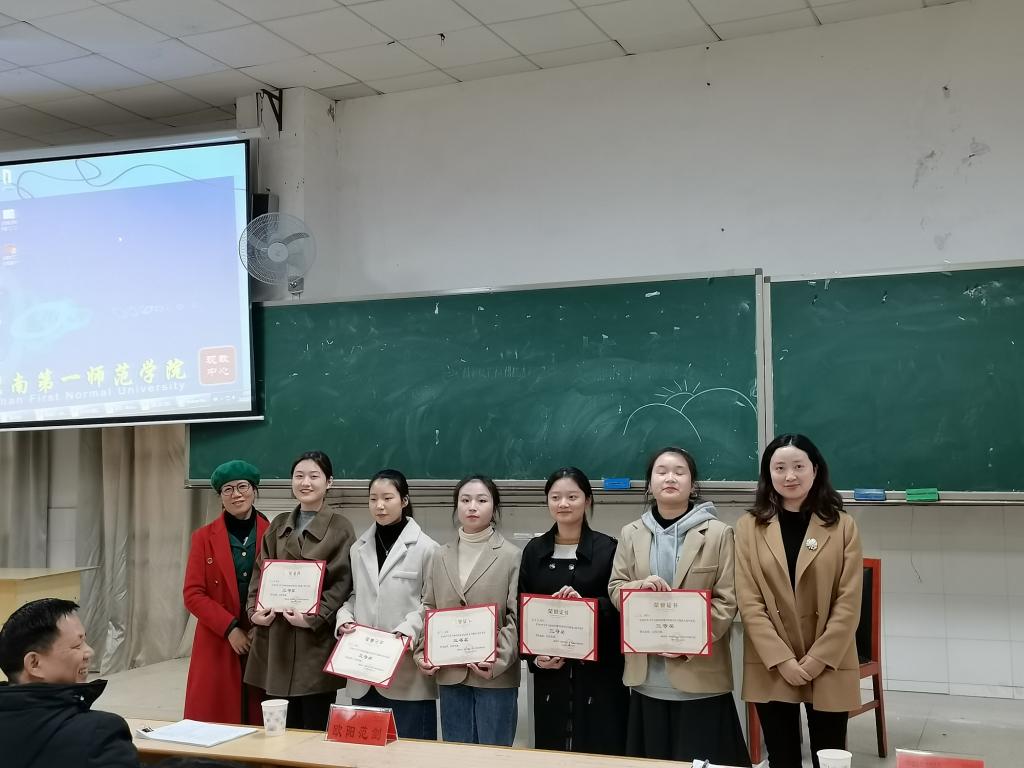 经评审团最终评审,797中文班聂新宇、797中文班郭翔宇、797中文班游景岚、800中文班王湘、801中文班李琴、801中文班唐群等6名同学荣获一等奖,796中文班朱甜等8名同学荣获二等奖,796中文班李纯等10名同学荣获三等奖。院领导龙永干、欧阳范剑、王霞,专业评委周杨林、谢杰、周媛、袁利芬等老师分别为他们颁奖,并对他们表示了热烈的祝贺和深切的期待。