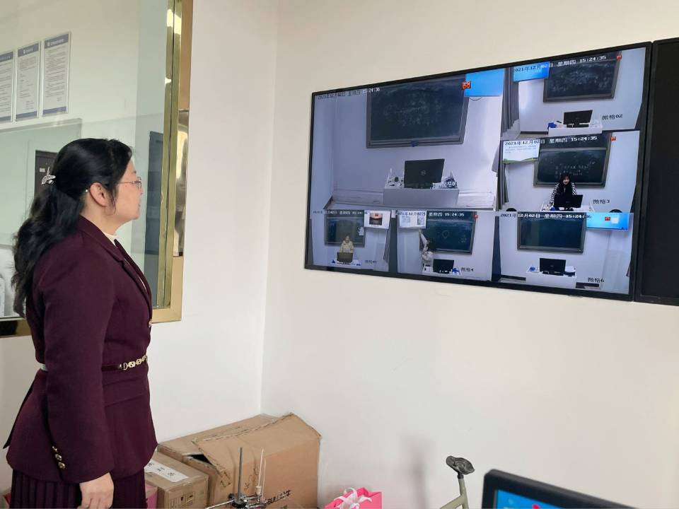王霞首先在监控室查看了各个实习队在微格教室实训情况,然后与各带队教师进行了有关实习态度、教师技能以及实习条件等方面内容的沟通,并随机进课堂听课。在沟通过程中,实习师生对学院教育实习工作安排都表示了高度的肯定,带队教师也将实习生实训情况进行了客观反馈。王霞对带队教师的辛勤指导表示了诚挚的感谢,并表示学院会尽一切努力为实习师生提供质量保障,确保教育实习工作顺利完成。