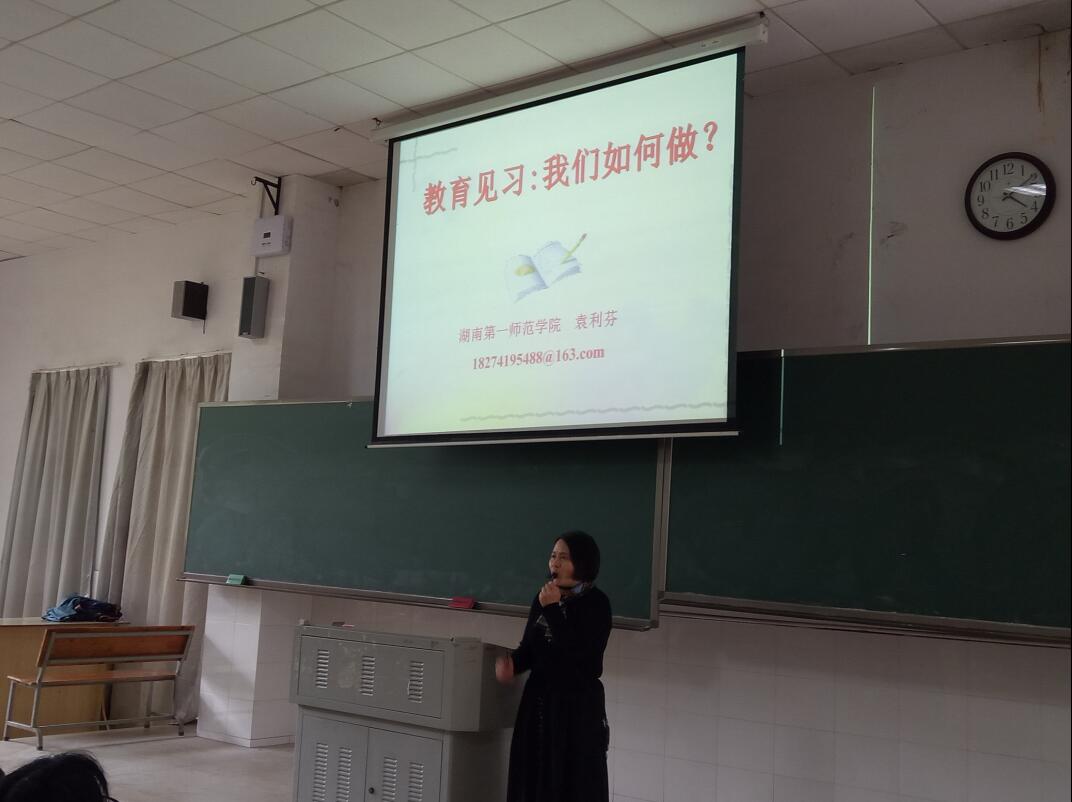 本次大会由李希光主持。主讲教师袁利芬以“教育见习:我们如何做?”为主题,从见习的意义、准备、听课、评课等方面为学生作了详细的阐述,使得初次接触见习工作的学生疑虑顿消。龙永干副院长对袁老师的讲座给予了很高的评价,并从见习的意义、纪律、安全等方面加以强调,为本次动员大会画上了圆满的句号。