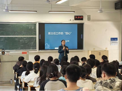 周满意校长以自身教育经历为例,详细阐述了班主任工作的重要性,提出了班主任工作的“四心”,即爱心、童心、公平心以及获得家长的芳心。在谈到如何获得家长的“芳心”时,周校长结合多年工作经验,从“信任感的获得”“归属感的打造”“认同感的增强”“责任感的提升”四个方面给同学们支招,特别强调注意第一印象、打造班级文化、开发班级课程和引导家长学习。在互动环节,同学们踊跃提问,周校长结合教育实践为同学们做出了全面详细的解答。