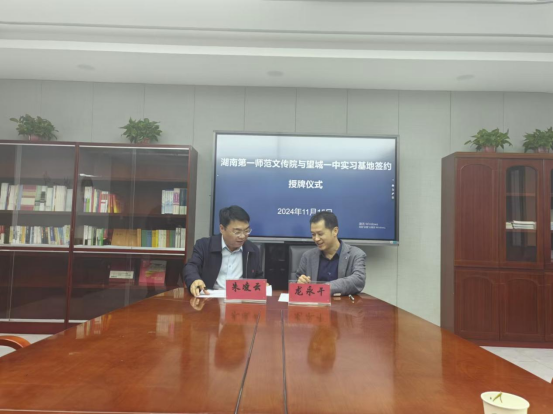 2024年11月15日,在长沙市望城区第一中学举行了实践教学基地建设签约仪式。长沙市望城区第一中学党委书记朱凌云、课程教务中心主任李文华、高一年级部主任刘凯奇以及暗网禁区 党委书记刘立勇、院长龙永干、教科办主任林璟辉参加了签约授牌仪式。