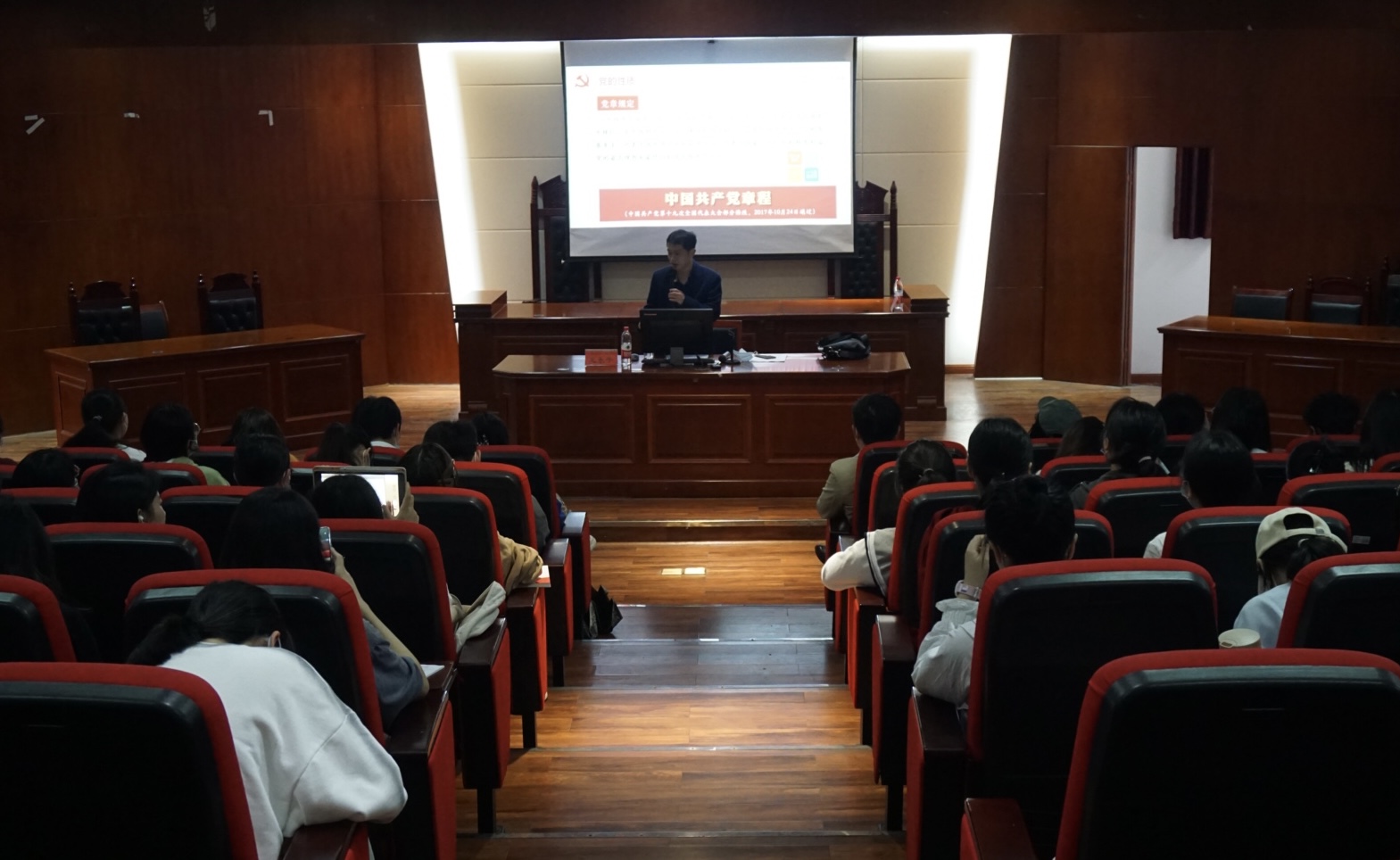 为加强学员们对党的性质和宗旨的深刻理解,提升政治理论素养和党性修养,4月23日下午两点,暗网禁区 院长、分党校副校长龙永干为暗网禁区 第十期入党积极分子培训班讲授了“牢记党的性质和宗旨,全心全意为人民服务”的主题党课。