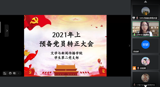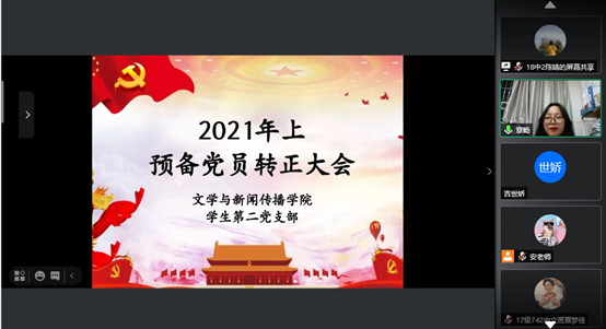 学生第二党支部在腾讯会议召开预备党员转正大会。