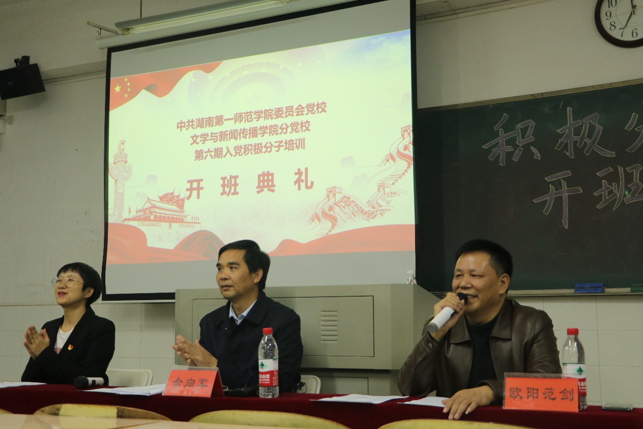 开班典礼在欧阳范剑书记的谆谆教导中落下帷幕,随后,佘向军书记以“中国共产党的光辉历程与当代大学生的历史使命”为主题,为本期入党积极分子培训班进行第一堂专题党课的讲授。佘书记从中国共产党的光辉历程和当代大学生的历史使命两个方面进行了全面深入的解读,指出党和国家把希望寄托在新一代青年身上,当代大学生要有想作为的使命意识、敢作为的担当和善作为的高强本领,争取成为优秀的共产党员。