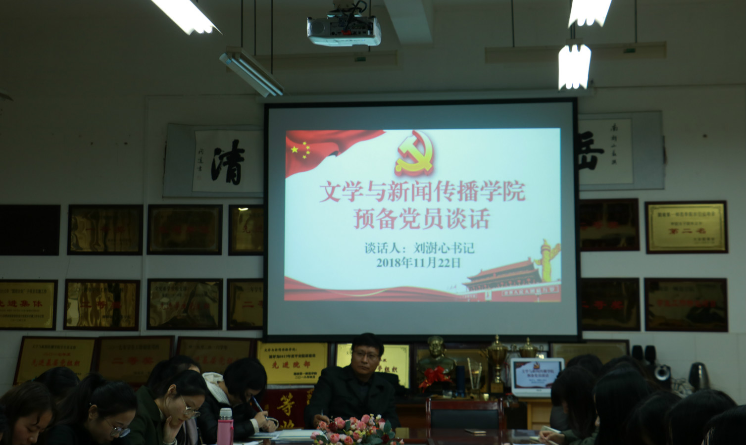 党总支书记、分党校校长刘澍心书记代表上级党组织同新一批预备党员于玉衡楼201进行了一次谈话。
