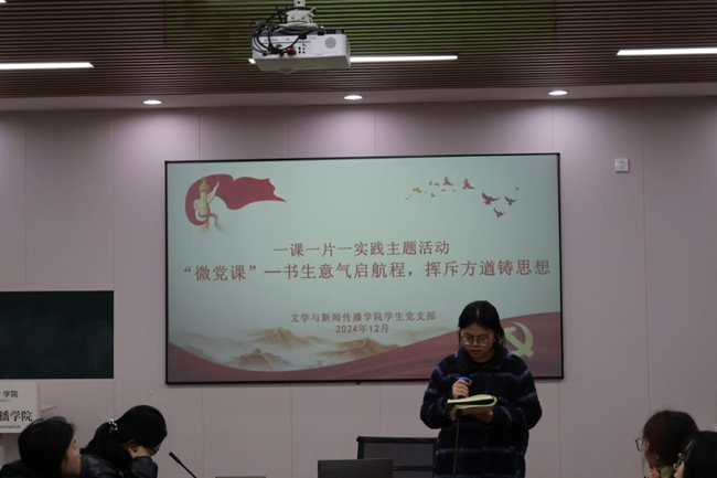 学生党支部在玉衡楼201开展“书生意气启航程,挥斥方遒铸思想”的主题党日活动。学生第一党支部副书记陈滢琪出席,全体在校学生党员与会。