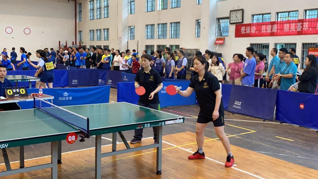 2022年教职工乒乓球团体赛在东方红校区体育训练馆举行。本次比赛由校工会主办、校教职工乒乓球协会承办。来自19个分工会的260多名教职工参加了比赛。校领导罗成翼、童小娇、李克勤出席了开幕式和闭幕式。