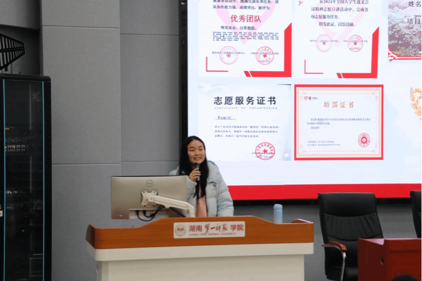 聚焦社会实践,黄佳颖以自身担任院青年志愿者协会主要学生干部经历以及暑期赴芷江开展实践调研的经历为例,生动诠释了“世界是一本厚重而精彩的书,不主动走出去的人永远只能读到它的扉页”。“不是活动本身无趣,而是我们尚未能走到有趣的深处,”她坦言实践过程中虽有艰辛与自我怀疑,但突破“第一次”后所收获的团队情谊、社会认知与个人成长,让一切付出都变得意义非凡。