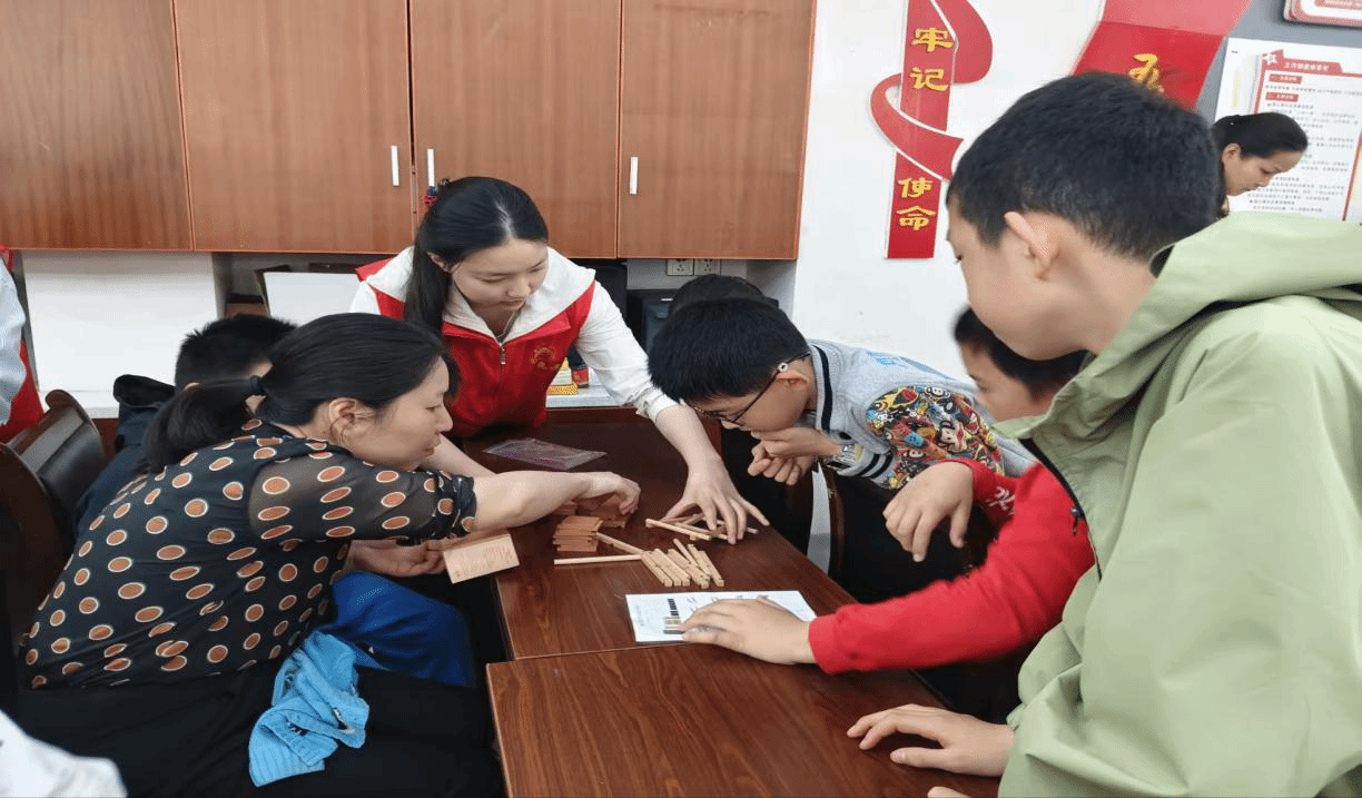 志愿者与社区孩子们欢聚一堂,在欢声笑语中感受榫卯技艺的独特魅力,传承非遗文化。