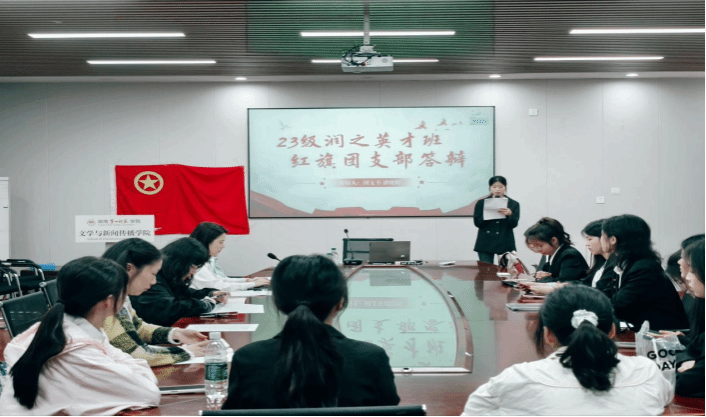 答辩现场,各团支部代表精神饱满地汇报了在思想教育、团员服务、支部建设、综合荣誉等方面的工作举措与成效。参与红旗团支部角逐的支部汇报内容紧扣团的主业,数据详实、亮点鲜明。23级润之英才班团支部秉持勤学求新、踏实有为的理念,交出了4项国家级立项和5项省级立项的青春答卷。23级中文5班团支部严格规范落实“三会两制一课”,团员管理规范,班级总志愿时长高达2823小时,其中9名同学的志愿时长都超过了110小时,充分展现出严谨务实、奋勇争先的优良风貌。