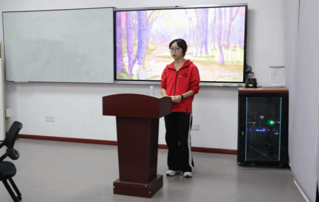 主持人以世界读书日为引,介绍《悉达多》的文学价值与精神内核,倡导同学们以书为友、以读为伴,在阅读中丰盈精神世界。随后,同学们依次上台分享阅读感悟。24级中文4班陈子洋梳理了作品的思想脉络,从追寻信仰、直面欲望、接纳自我到最终觉醒,多元而真挚的思考令现场氛围温暖而深刻;24级978班黄明晰即兴分享、旁征博引,通过与其他作品横向比较,进一步揭示了东西方文学对“自我追寻”主题的共通表达,加深了同学们对于作品的理解。