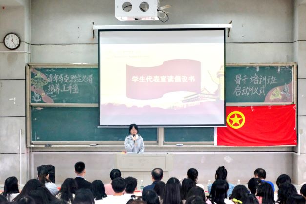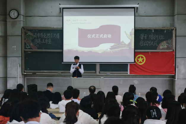 第十一期青年马克思主义者培养工程骨干培训班启动仪式在润寰南105举行,学院党委书记何培森、学工办主任唐科、分团委书记熊薇、学工办副主任曾志远、全体辅导员老师以及170余名青马学员参会。开班仪式由学院分团委书记助理李津宇主持。