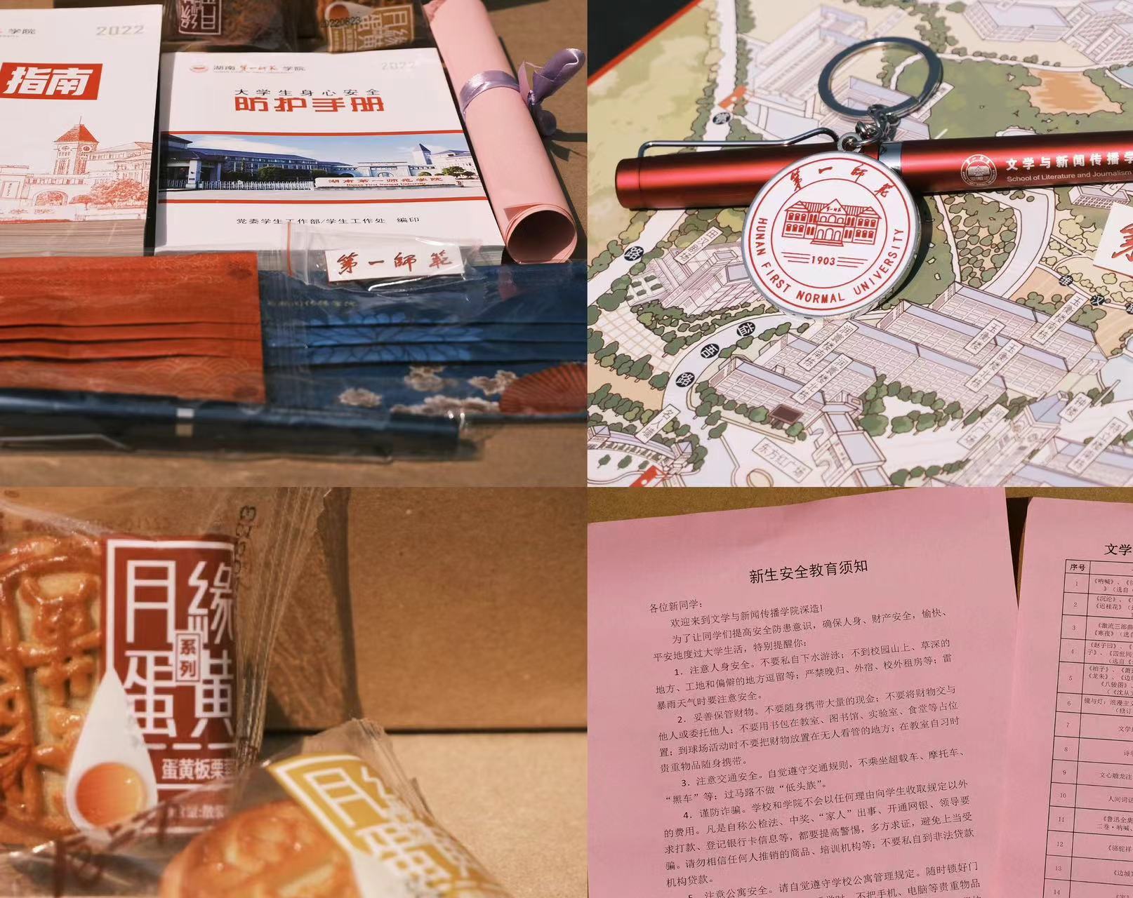 在国基广场,每一位新生都收到了一份学院精心准备的惊喜礼物。牛皮礼袋里装有两本生活手册、文传定制钢笔、定制口罩、专业推荐书单、校徽以及美味月饼。礼轻情意重,新生们收到礼袋后惊喜满满,纷纷感叹“被重视的感觉真好”“太幸福了”!