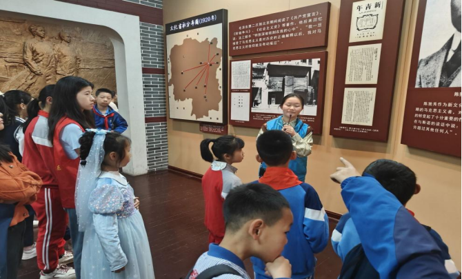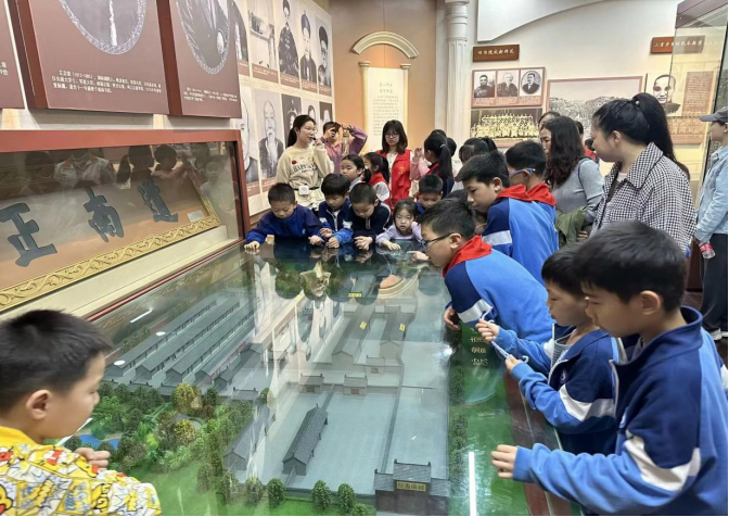 学生志愿者带领麓景社区大、小朋友们,走进城南书院,沿着习近平总书记的脚步,感受深厚的红色文化底蕴,领悟丰富的红色文化精神财富。