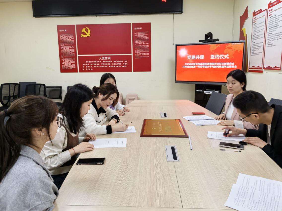 与长沙市岳麓区梅溪湖街道梅园社区签订合作协议,共建大学生志愿服务实践基地,打造实践育人共同体。院团委书记熊薇、梅园社区居委会副书记朱立志、院青年志愿者协会负责人等出席签约仪式。