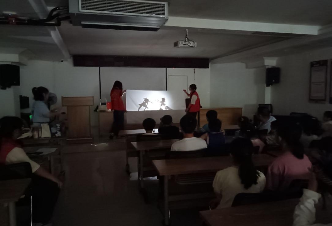 的志愿者们正热闹地上演一出精彩的皮影“大戏”——《三打白骨精》,为梅园社区公共服务中心的小朋友们带来了一场沉浸式的非遗文化传承主题课。