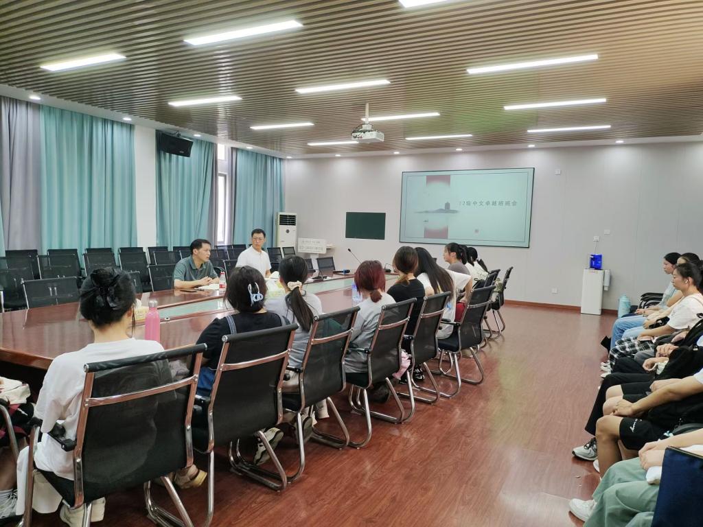 9月9日上午,22级汉语言文学卓越班全体同学在玉衡楼201会议室召开新学期学风建设班会,学院院长龙永干、党委副书记李豪杰参加会议。