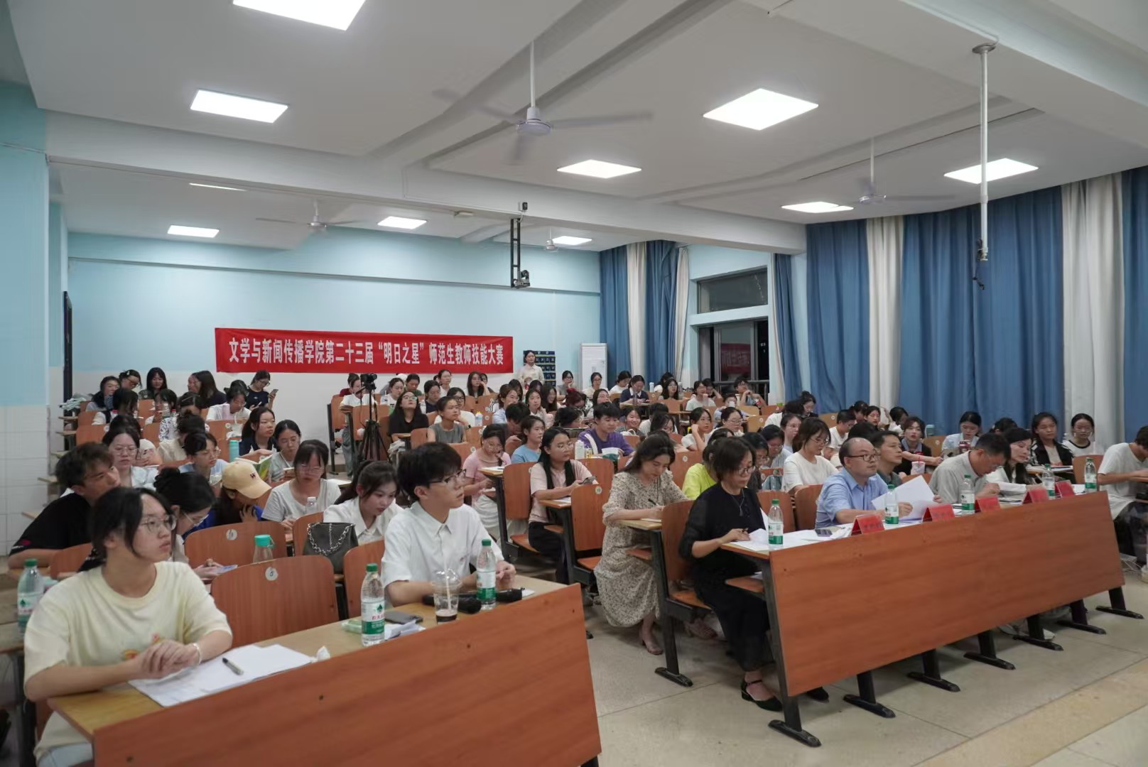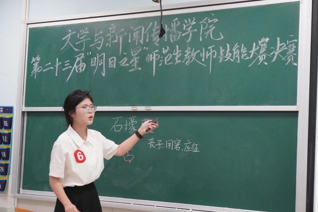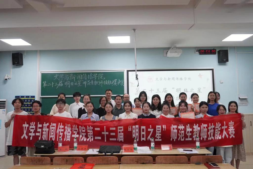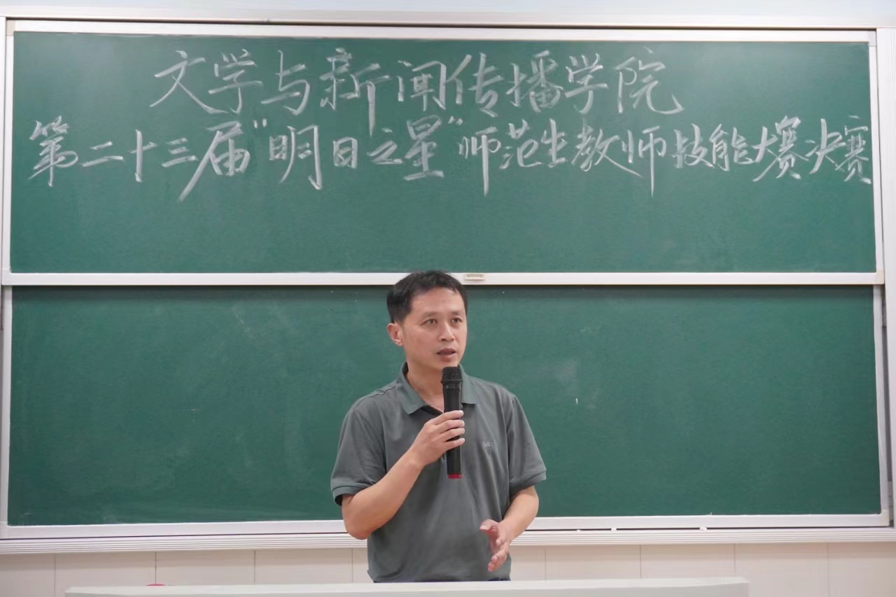 第二十三届“明日之星”师范生教师技能大赛决赛于9月29日晚在怀中南401教室落下帷幕。12位选手脱颖而出进入决赛,决赛由院长龙永干,党委副书记李豪杰、副院长杨水远,综合教研室主任张虹、小学语文教学论团队周杨林老师担任评委,2022-2023级100余名师范专业学生现场观摩学习。