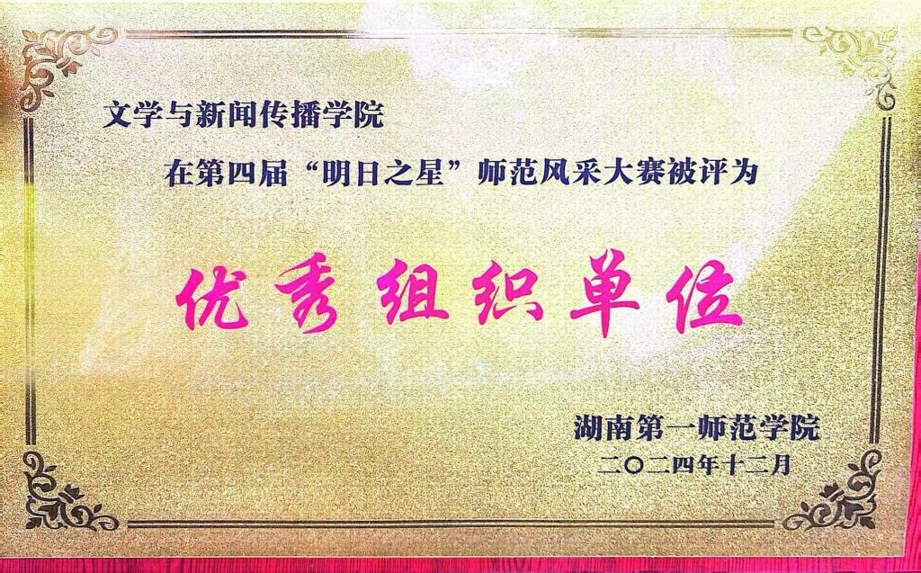 凭借出色的组织工作和选手们的优异表现荣获第四届“明日之星”师范风采大赛“优秀组织奖”!