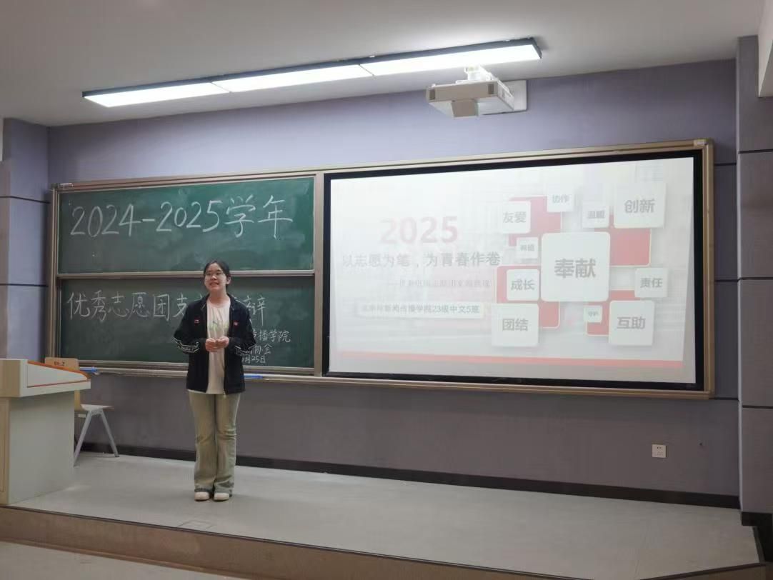 青志协组织开展“优秀志愿团支部”评选答辩。来自22级汉教1班、23级汉教1班等团支部代表,通过材料展示、口头汇报、提问答辩三个环节,充分展现了新时代青年践行志愿精神的责任担当。