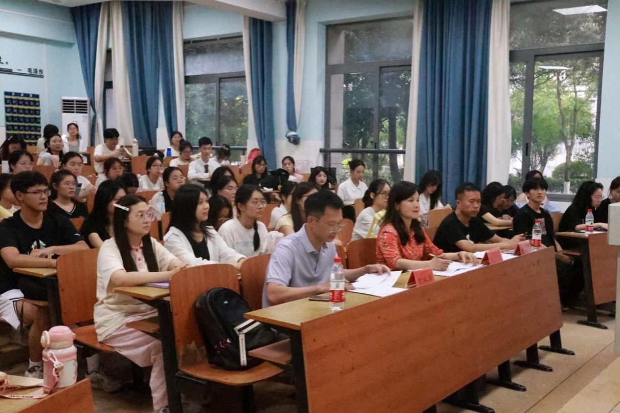 综合教研室主任张虹,副主任李锴正,汉语言文学系教师童业富担任评委,2022-2024级100余名师范专业学生现场观摩学习。