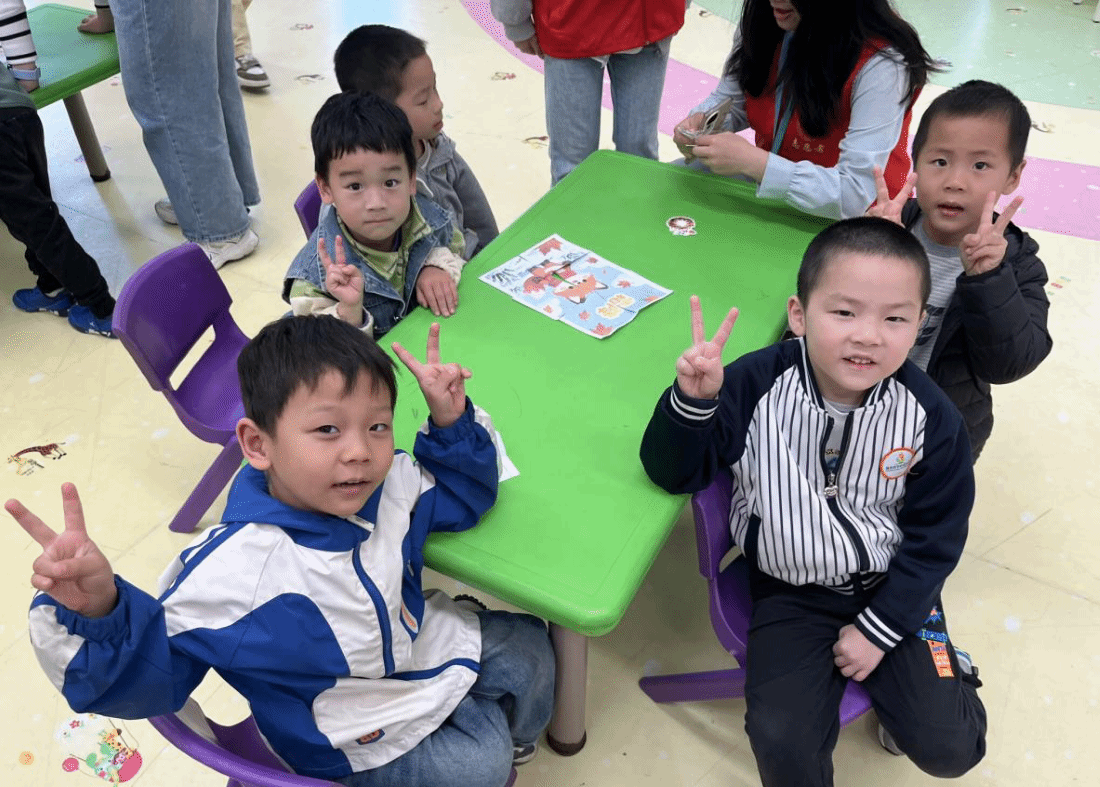彩色拼图散落在桌上,印着柿子、枫叶、霜花图案,这是为孩子们准备的节气游戏。“要拼红红的柿子!”5岁的欣欣拿起拼图块比对。孩子们分工协作,有的找边缘,有的调位置,遇难题时互相提醒:“这块不对,换一个!”率先完成的小组欢呼举手,全员获小奖品。未完成的小组在志愿者鼓励下,也慢慢拼出完整画面,小脸上满是专注。