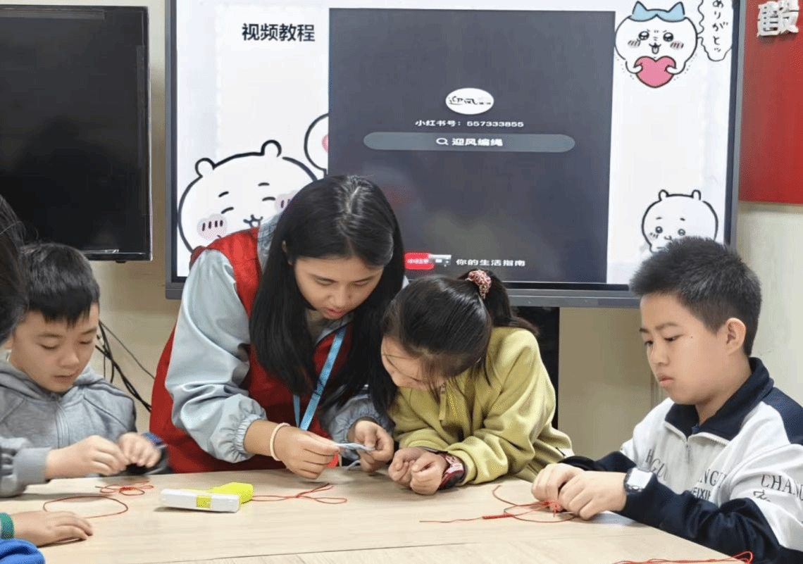志愿者在梅园社区举办“红魂新传中国结,巧手织梦铸匠心”主题活动,让红色基因与非遗技艺在青少年的亲身体验中,焕发新的生机。